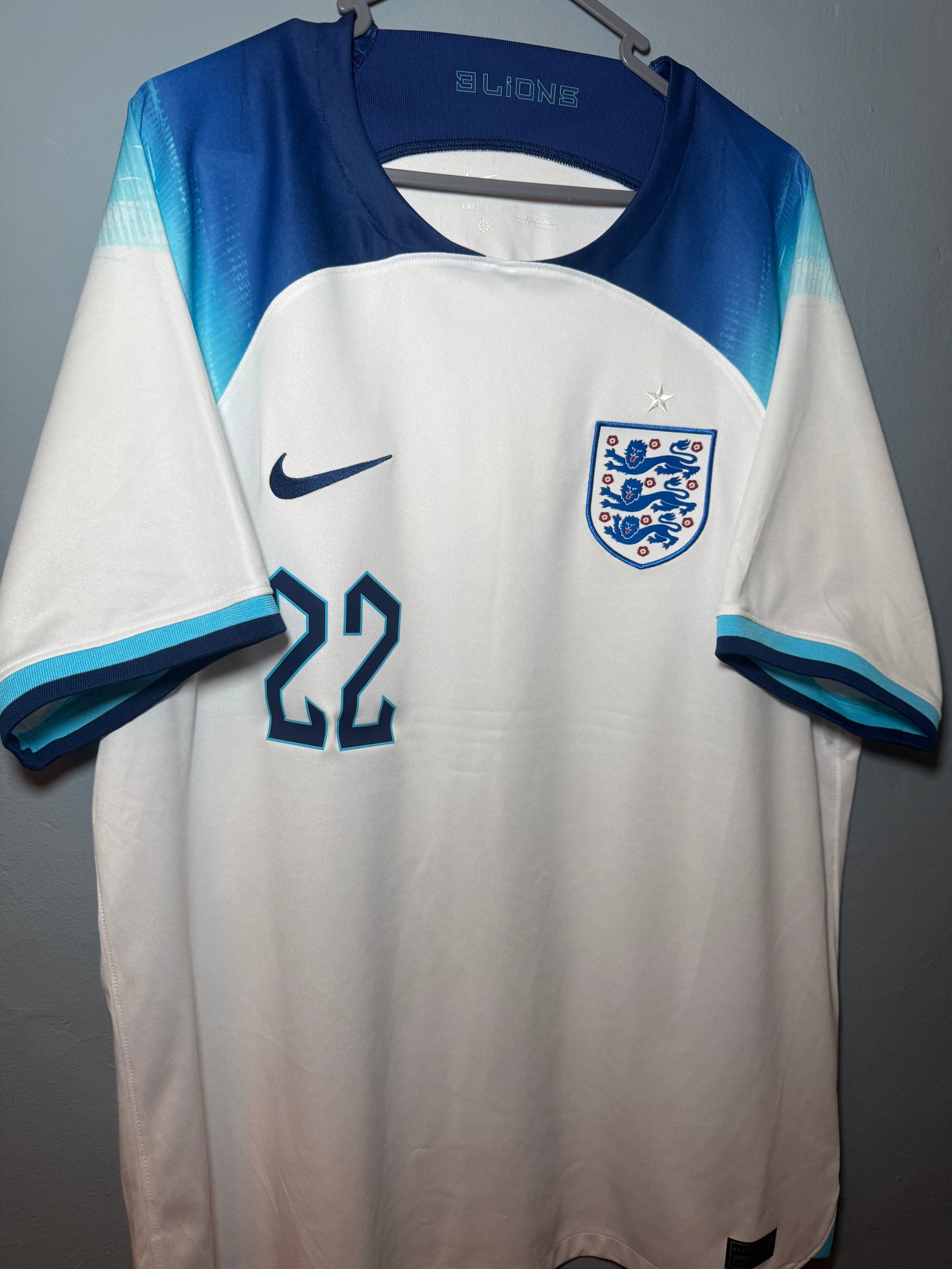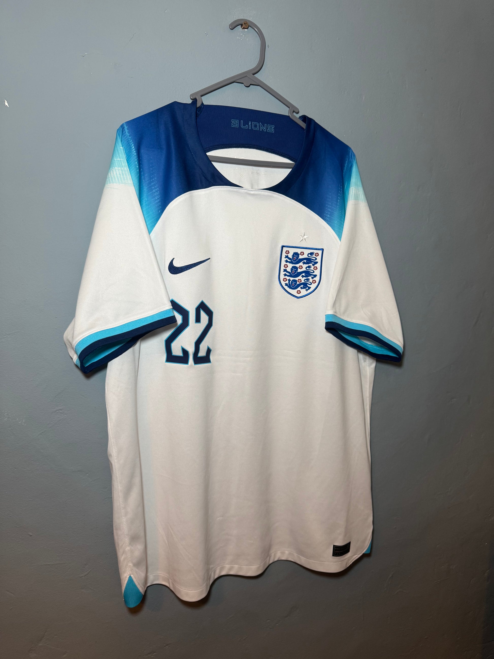England Football Shirt - 2022 - Home - XL - #22 Jude Bellingham